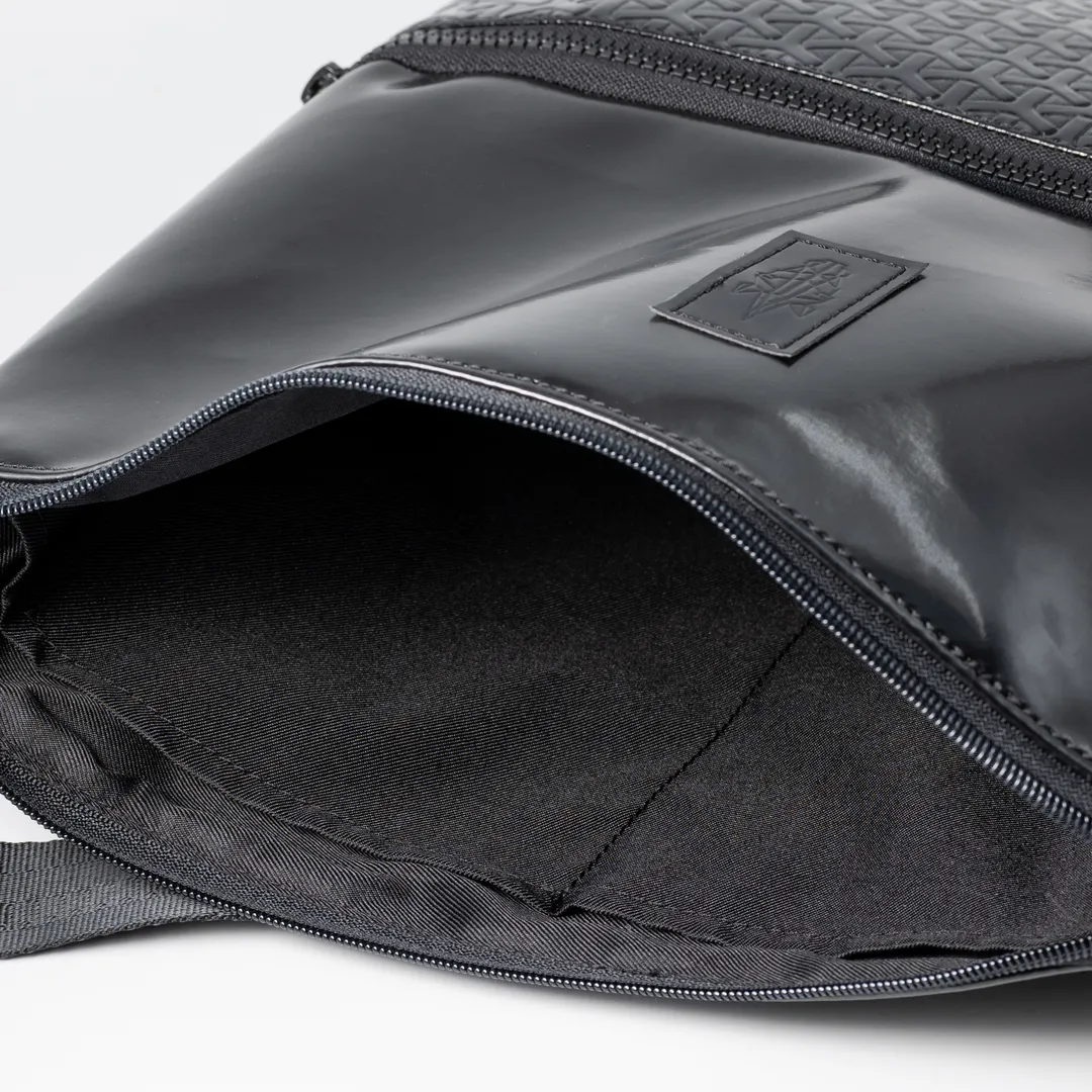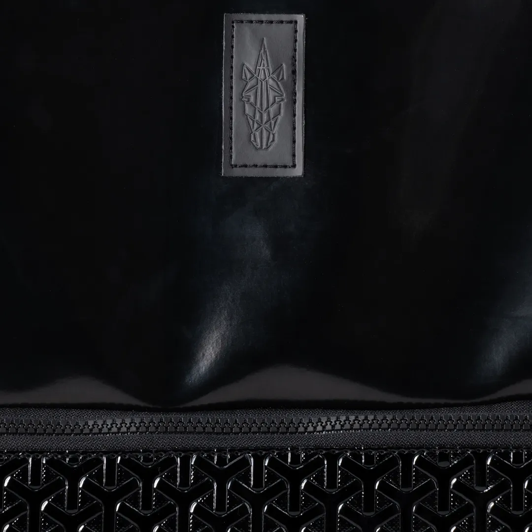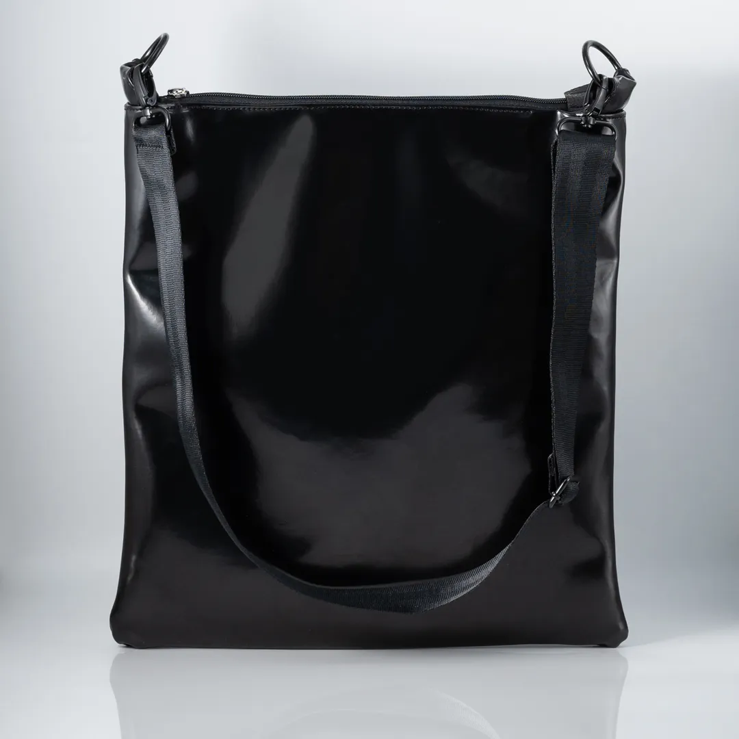 Τσάντα τύπου tote bag κατασκευασμένη από 2 υλικά: μαύρη βινύλ δερματίνη και λουστρίνι δερματίνη με ανάγλυφο τύπωμα σε μαύρο χρώμα. Η Black Y Tote Bag εσωτερικά έχει δύο τσέπες, μαύρη φόδρα και η κεντρική θήκη κλείνει με φερμουάρ. Εξωτερικά έχει άλλη μία τσέπη που κλείνει με φερμουάρ. Είναι διαθέσιμη με μαύρο ιμάντα φάρδους 4εκ. που έχει αυξομείωση και είναι αποσπώμενος. Είναι αρκετά ευρύχωρη και ιδανική για όλη την ημέρα. Φοριέται τόσο στον ώμο όσο και χιαστί. Οι διαστάσεις της είναι στα 39 εκ. ύψος με 32 εκ. μήκος. Όλα μας τα προϊόντα κατασκευάζονται στο ατελιέ μας στη Θεσσαλονίκη, δίνοντας έμφαση στη λεπτομέρεια και με σεβασμό προς τον πελάτη και το περιβάλλον.