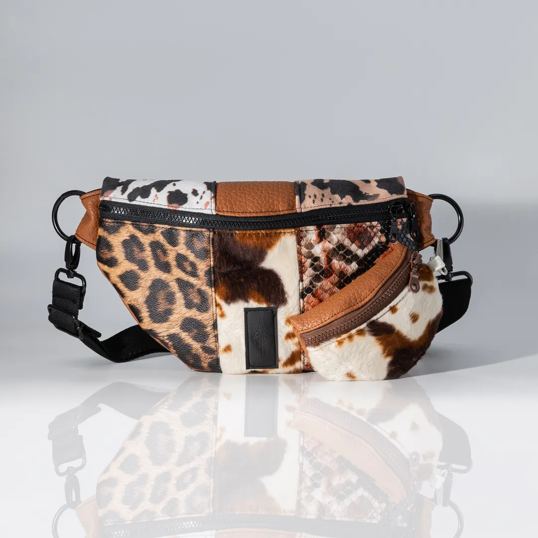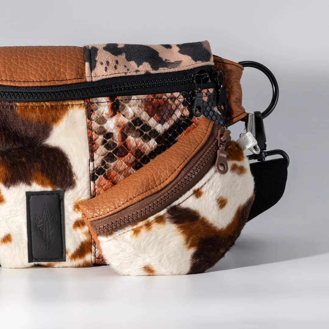 Μπρελόκ σε σχήμα τσάντας μπανάνα κατασκευασμένo από δύο υλικά: συνθετικό υλικό με εφέ pony skin με cow print σε γήινες αποχρώσεις και δερματίνη ματ σε καφέ χρώμα.Το Cow Lover Charm Banana Bag είναι αποσπώμενο και μπορεί να κρεμαστεί οπουδήποτε. Χωράει, κέρματα, χαρτονομίσματα, χρεωστική/πιστωτική κάρτα, ακουστικά, κλειδιά κτλ. Διαθέτει μεταλλικό κλιπ και μπορεί να κρεμαστεί. Το μπανανάκι έχει 15 εκ. φερμουάρ με 10 εκ. ύψος. Όλα μας τα προϊόντα κατασκευάζονται στο ατελιέ μας στη Θεσσαλονίκη, δίνοντας έμφαση στη λεπτομέρεια και με σεβασμό προς τον πελάτη και το περιβάλλον.