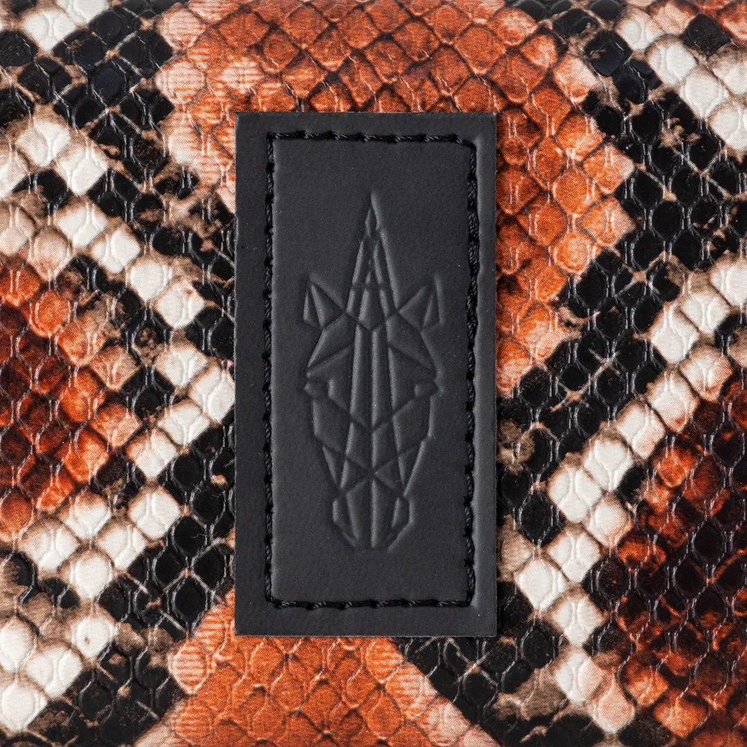 Tobacco case for 30 g, with compartments for rolling papers, filters, a lighter, and tobacco. The Brown Sugar Tobacco Case is made from matte faux leather with a snake print in white, black, and brown. All our products are made in our Thessaloniki atelier, with a focus on detail and respect for our customers and the environment.
