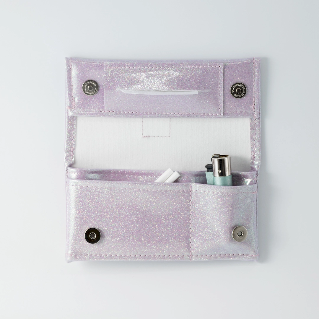 Tobacco case with compartments for rolling papers, filters, a lighter, and 30 gr. tobacco. The Purple Sparkle Tobacco Case is crafted from synthetic PVC material with a lilac glitter effect. All our products are made in our Thessaloniki atelier, with a focus on detail and respect for our customers and the environment. In the category https://katiangeli.com/accessories/tobacco-cases/ you can find other designs.
