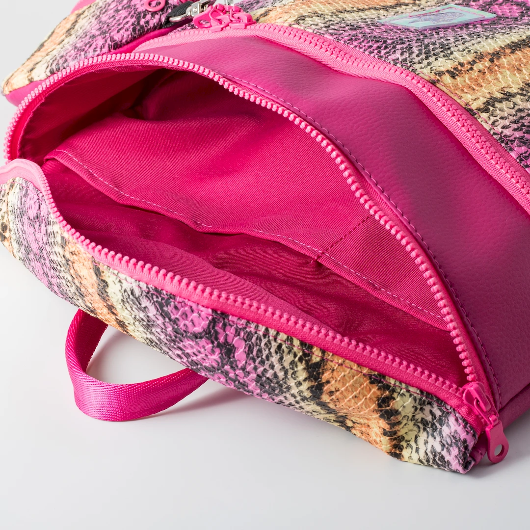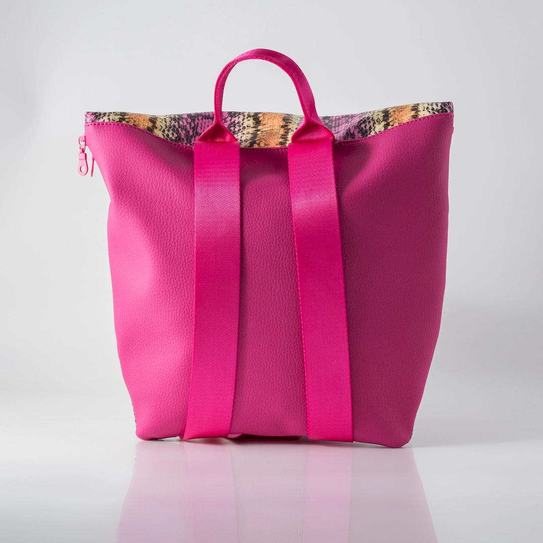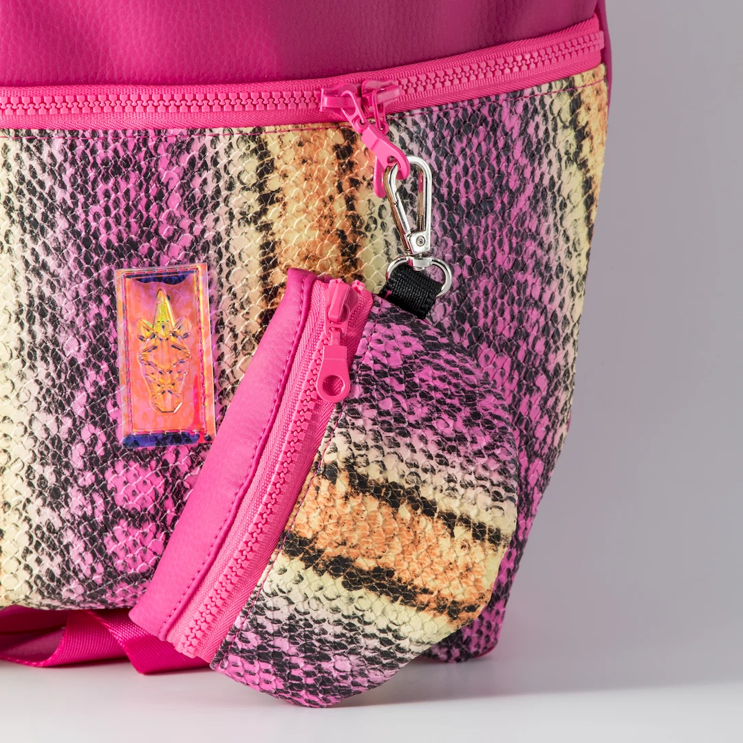 A backpack crafted from two materials: matte magenta leatherette and colorful embossed snake-effect leatherette. The Rainbow Mamba Backpack features a fuchsia lining, 2 internal pockets, and a zippered main compartment. It also has an exterior pocket with zipper. The straps are adjustable, and the small pouch is detachable. All our products are handmade in our Thessaloniki atelier, with attention to detail and respect for our customers and the environment. In the category https://katiangeli.com/backpacks/ you can find other designs.