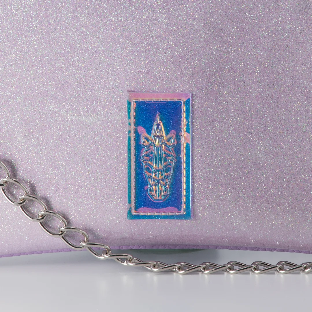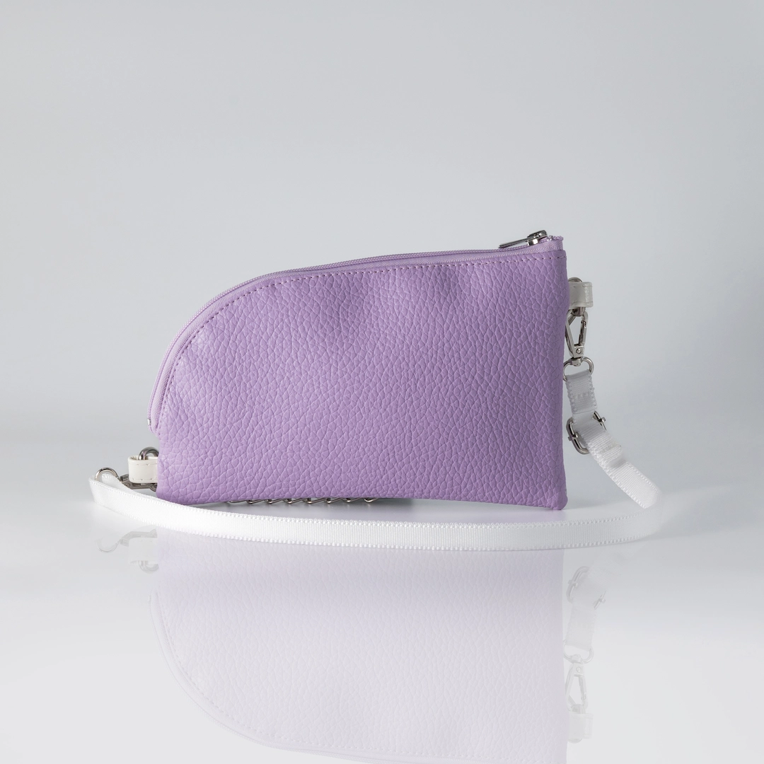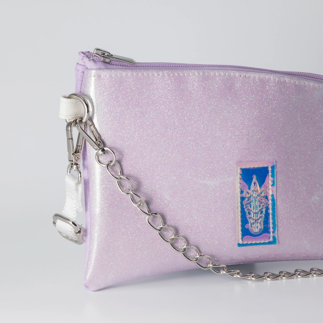 Φάκελος κατασκευασμένος από συνθετικό υλικό PVC με γκλίτερ εφέ σε λιλά χρώμα και ματ δερματίνη σε λιλά χρώμα. Κλείνει με φερμουάρ και εσωτερικά έχει φούξια φόδρα. Το Purple Sparkle Pouch είναι κατασκευασμένο για να φοριέται χιαστί με τον ιμάντα του, αλλά μπορεί να κρατηθεί και ως φάκελος σκέτος αφού ο ιμάντας μπορεί να αφαιρεθεί και να χρησιμοποιηθεί η διακοσμητική του αλυσίδα ως λαβή. Διαθέτει λευκό ιμάντα φάρδους 1,5 εκ. με αυξομείωση και αλυσίδα, που και τα δύο είναι αποσπώμενα. Έχει 26 εκ. μήκος με 16 εκ. ύψος και χωράει με άνεση κινητό, κλειδιά, καπνοθήκη ή iqos και ένα μικρό πορτοφόλι. Όλα μας τα προϊόντα κατασκευάζονται στο ατελιέ μας στη Θεσσαλονίκη, με έμφαση στη λεπτομέρεια και σεβασμό στον πελάτη και στο περιβάλλον.