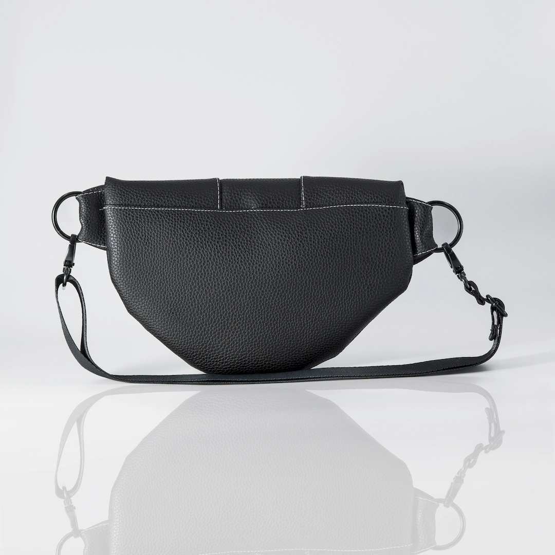 Τσάντα μπανάνα κατασκευασμένη από ματ δερματίνη σε μαύρο χρώμα. Η Tailored Small Banana Bag εσωτερικά έχει 2 τσέπες και μαύρη φόδρα. Διαθέτει μαύρο ιμάντα φάρδους 4 εκ. που διαθέτει αυξομείωση και είναι αποσπώμενος. Το μικρό μέγεθος έχει 32 εκ. φερμουάρ με 20 εκ. ύψος. Όλα μας τα προϊόντα κατασκευάζονται στο ατελιέ μας στη Θεσσαλονίκη, δίνοντας έμφαση στη λεπτομέρεια και με σεβασμό προς τον πελάτη και το περιβάλλον.